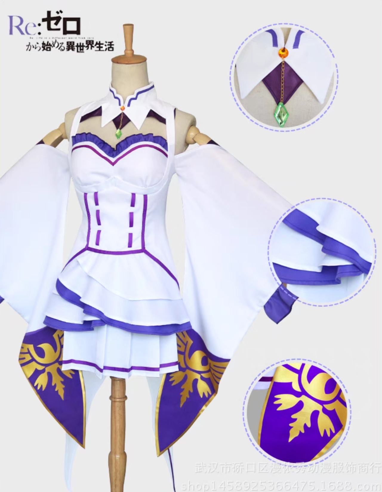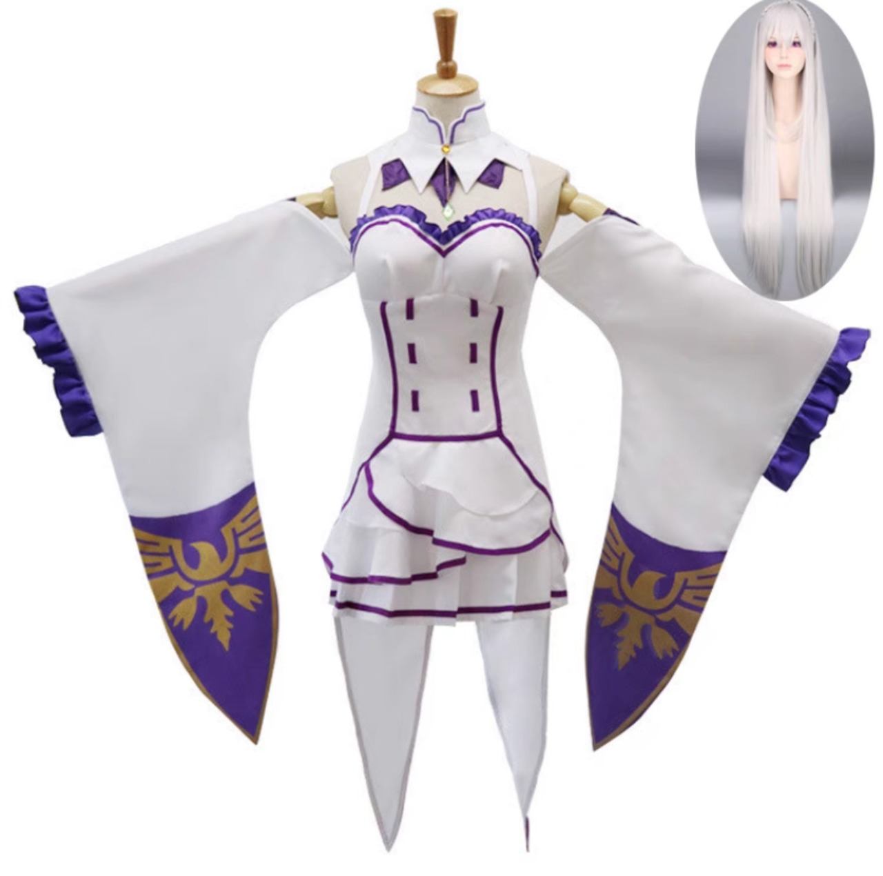 Re:ゼロから始める異世界生活 エミリア コスプレ衣装 アニメ衣装 フルセット ウィッグ付 760081603216
