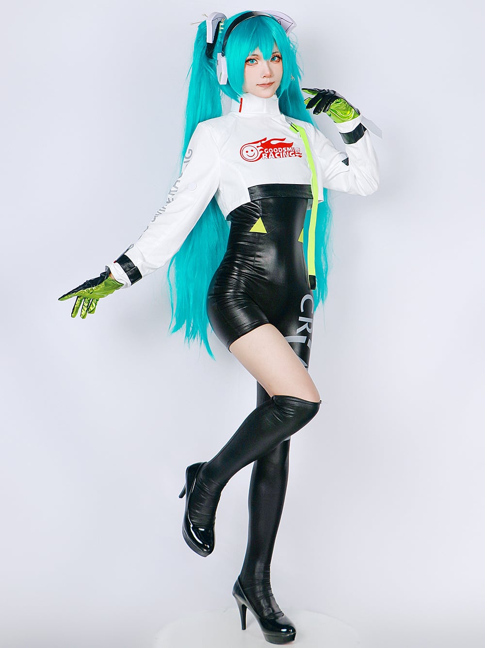 初音ミク レーシング コスプレ衣装 二次元 ゲーム アニメ コスプレ ヘッドセット付フルセット ウィッグ付 – あなたを魅力的なキャラクターに変身させる特別な一着!