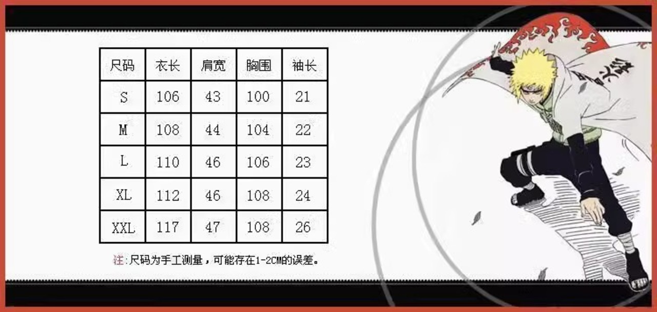 4代目火影ミナトの特徴的なデザインを見事に再現した衣装で、彼のカリスマ性が絶妙に融合しています。リアルな仕上がりが、まるでミナトそのものに変身できる特別な体験を提供します。