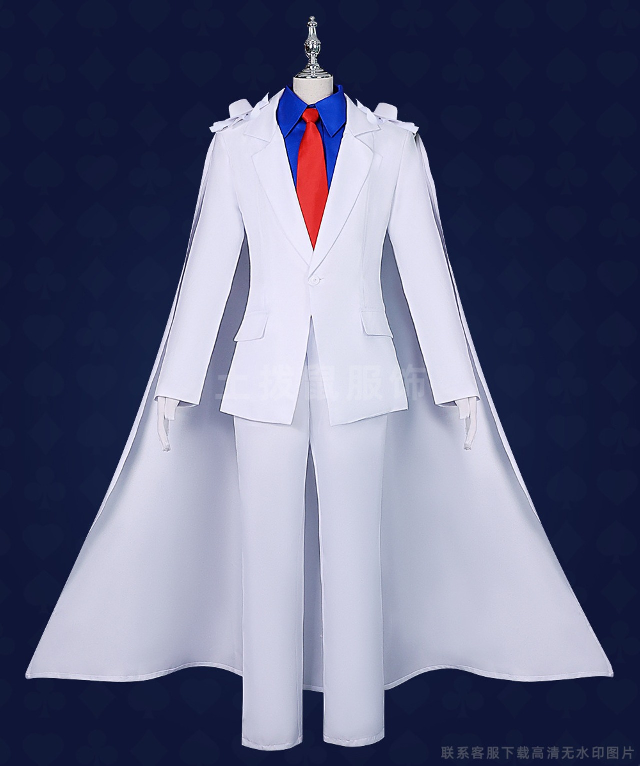 名探偵コナンの怪盗キッドの特徴的なスタイルを見事に再現した衣装で、彼のカリスマ性と華麗なアクションが絶妙に融合しています。リアルな仕上がりが、まるで怪盗キッドそのものに変身できる特別な体験を提供します。