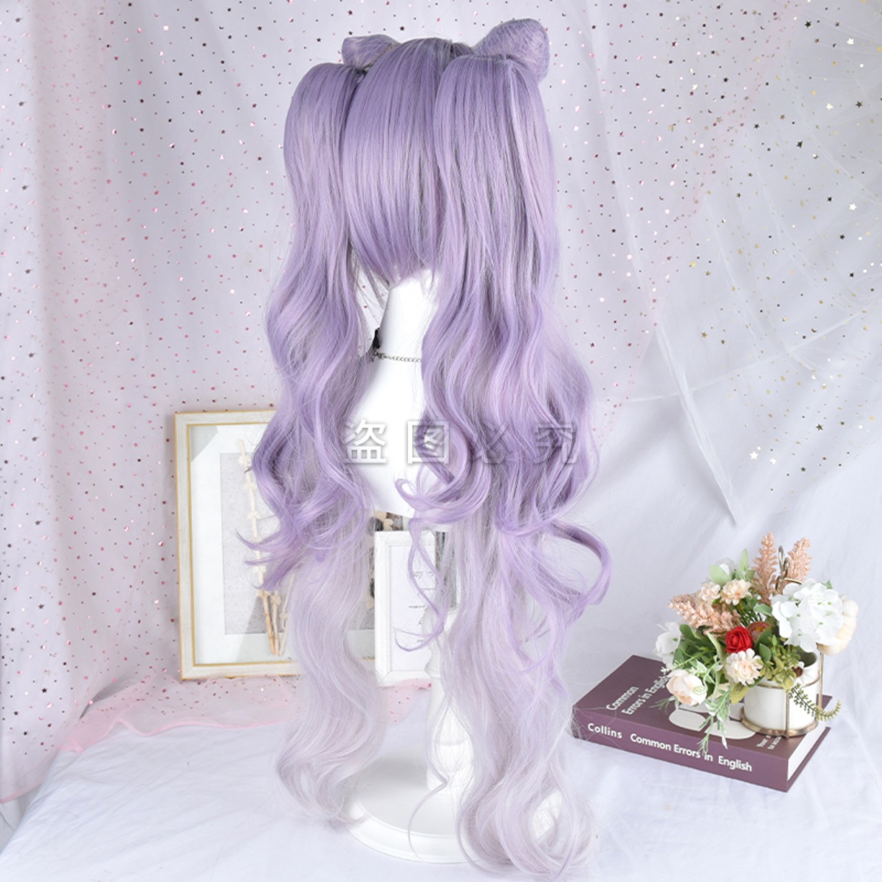 ウィッグ 原神 刻晴(こくせい)シャープアングル ダブルポニーテール 猫耳 グラデーションラタンパープルヘアセット TB-865157195713