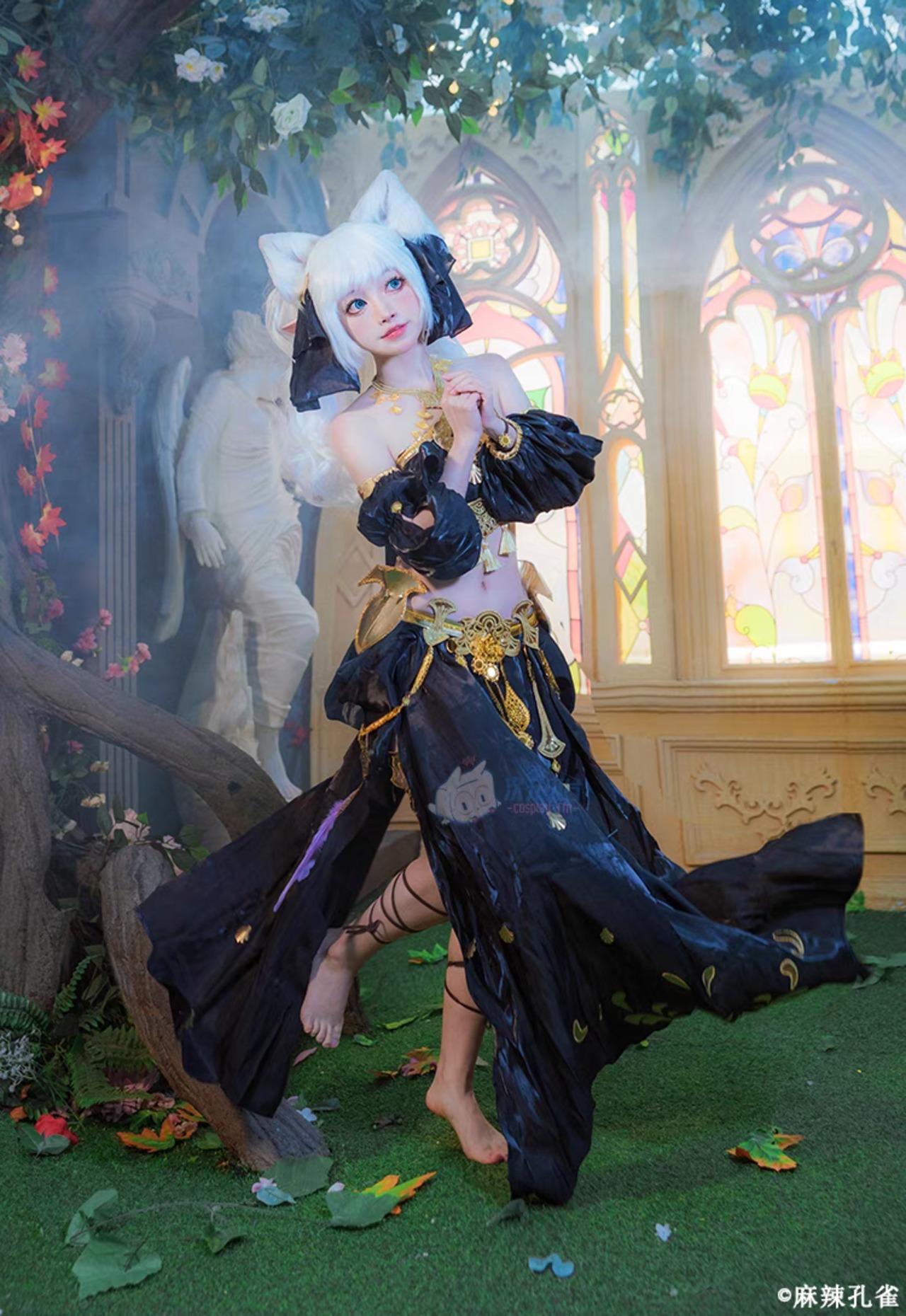 FF14 ファイナルファンタジー 踊り子 ダンサー コスプレ衣装 コスチューム フルセット 染めファッション ブラック ホワイト ウィッグ別 TB-682197086918