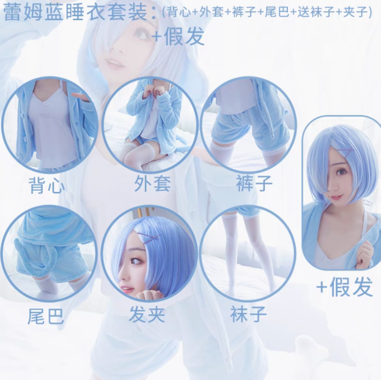 Re:ゼロから始める異世界生活 ラム レム コスプレ衣装 コスチューム かわいい 猫パジャマ フルセット ウィッグ付 TM-628386870412