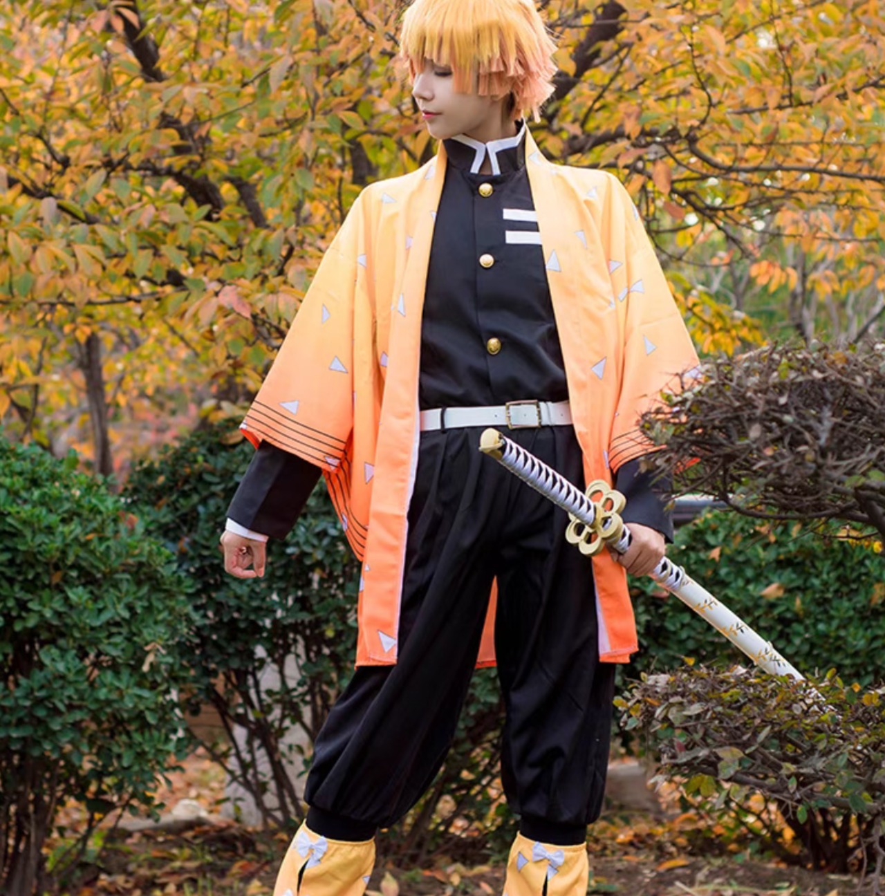スタイリッシュなデザインは写真映えも抜群!SNSでの投稿を通じて、あなたの魅力的な我妻善逸コスプレ姿を多くの人に見てもらえるチャンスです。