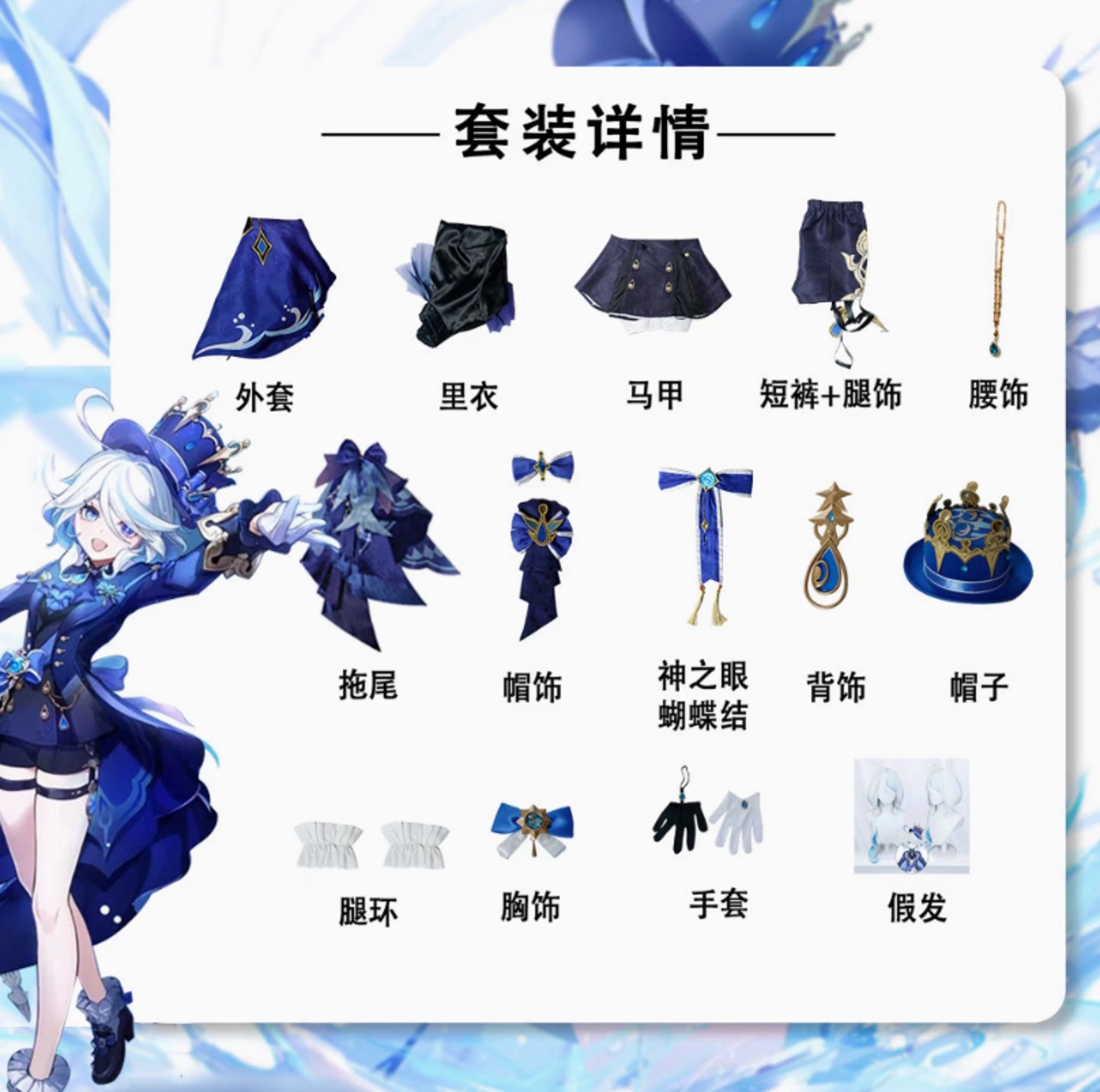 フォカロルスの独自の衣装スタイルを忠実に表現したコスプレ衣装で、キャラクターの魅力を余すことなく引き出します。このコスチュームを身にまとうことで、「原神」の幻想的な世界に浸る特別な体験が待っています!