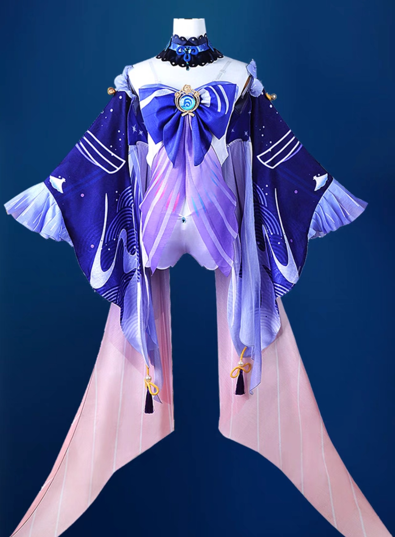 珊瑚宮心海の美しいスタイルを忠実に表現したコスプレ衣装で、キャラクターの魅力を余すことなく引き出します。このコスチュームを身につけることで、「原神」の幻想的な世界に浸る特別な体験が待っています!