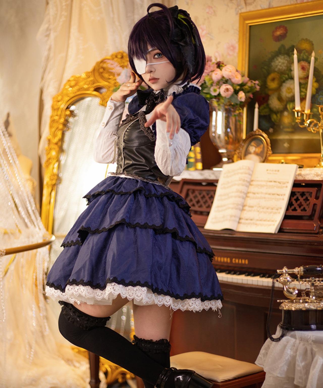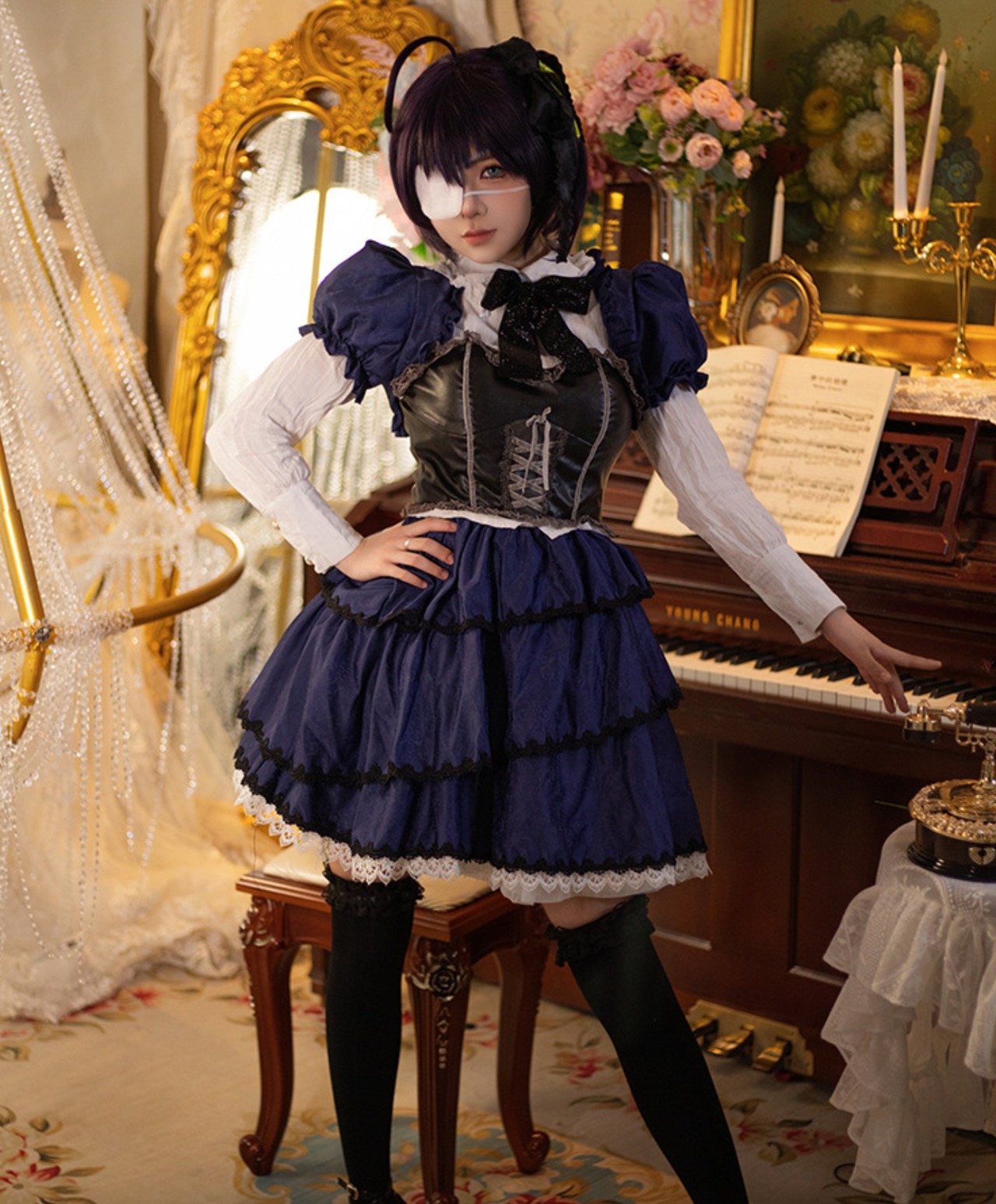 セット内容:コスプレ衣装(小鳥遊六花モデル)、髪飾り、リボン、レッグリング、目隠し、靴下