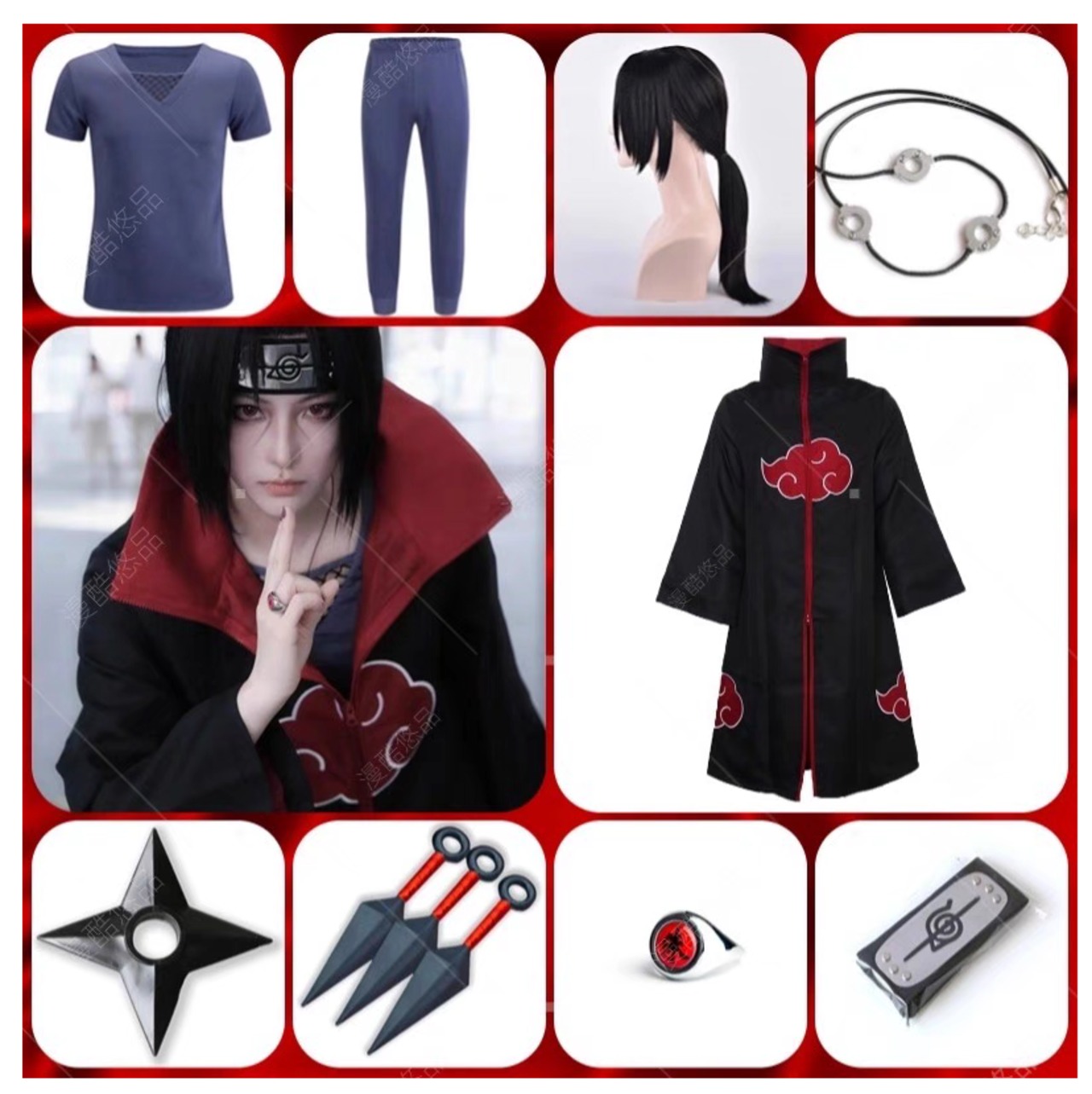 NARUTO うちはイタチ 暁 コスプレ衣装 コスチューム ウィッグ クナイ 額あて インナー 豪華フルセット TB-626146918842