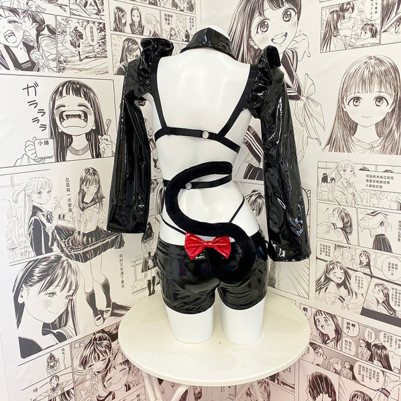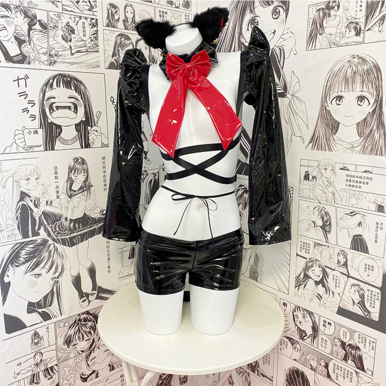 二次元 猫娘 セクシー コスプレ衣装 コスチューム ヘッドバンド + 首輪 + リボン + トップス + 下着 + パンツ + しっぽ – あなたのコスプレを特別なものに変える素晴らしいアイテムが登場!