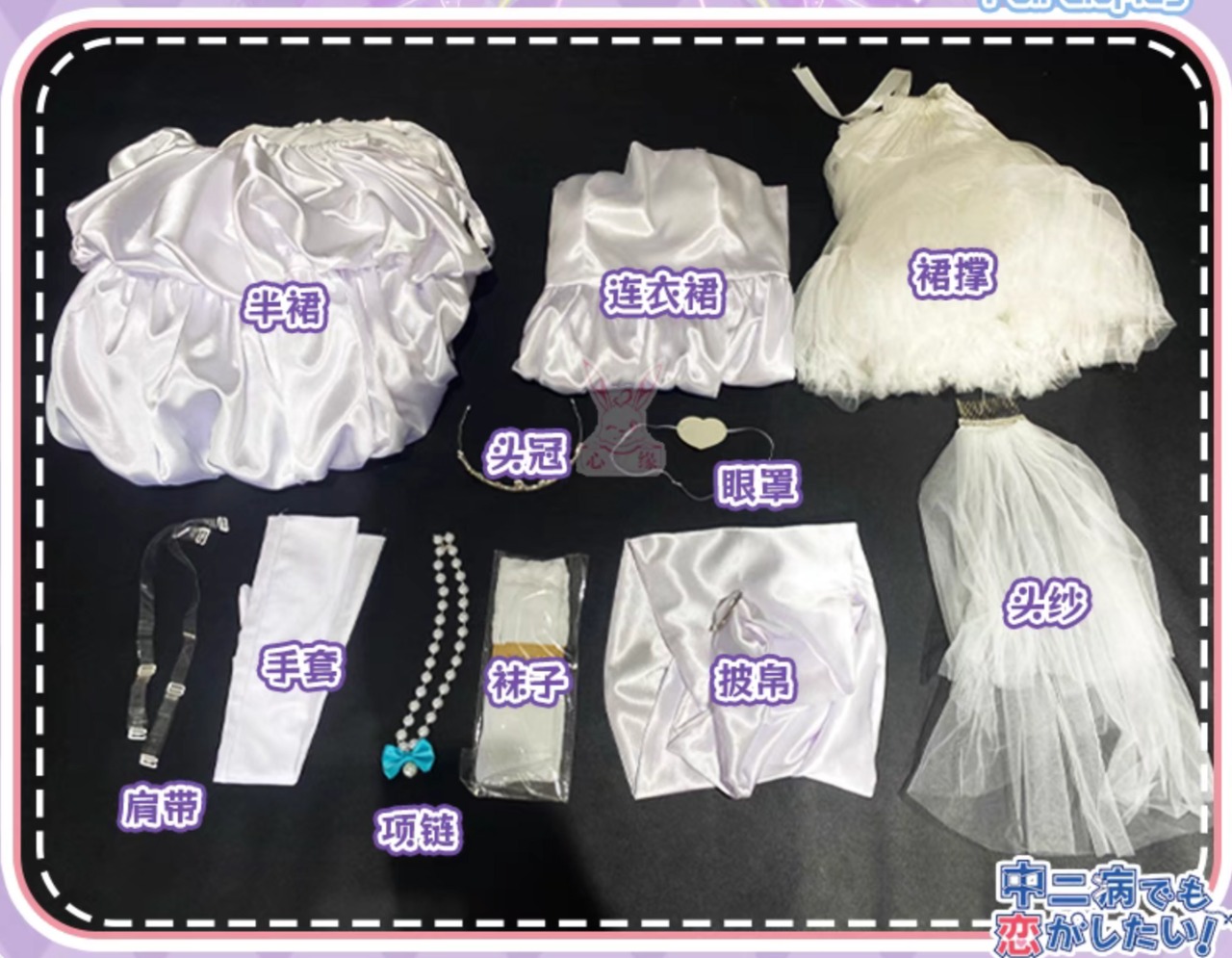 セット内容:コスプレ衣装(小鳥遊六花モデル)、ウェディングドレス、アクセサリー一式