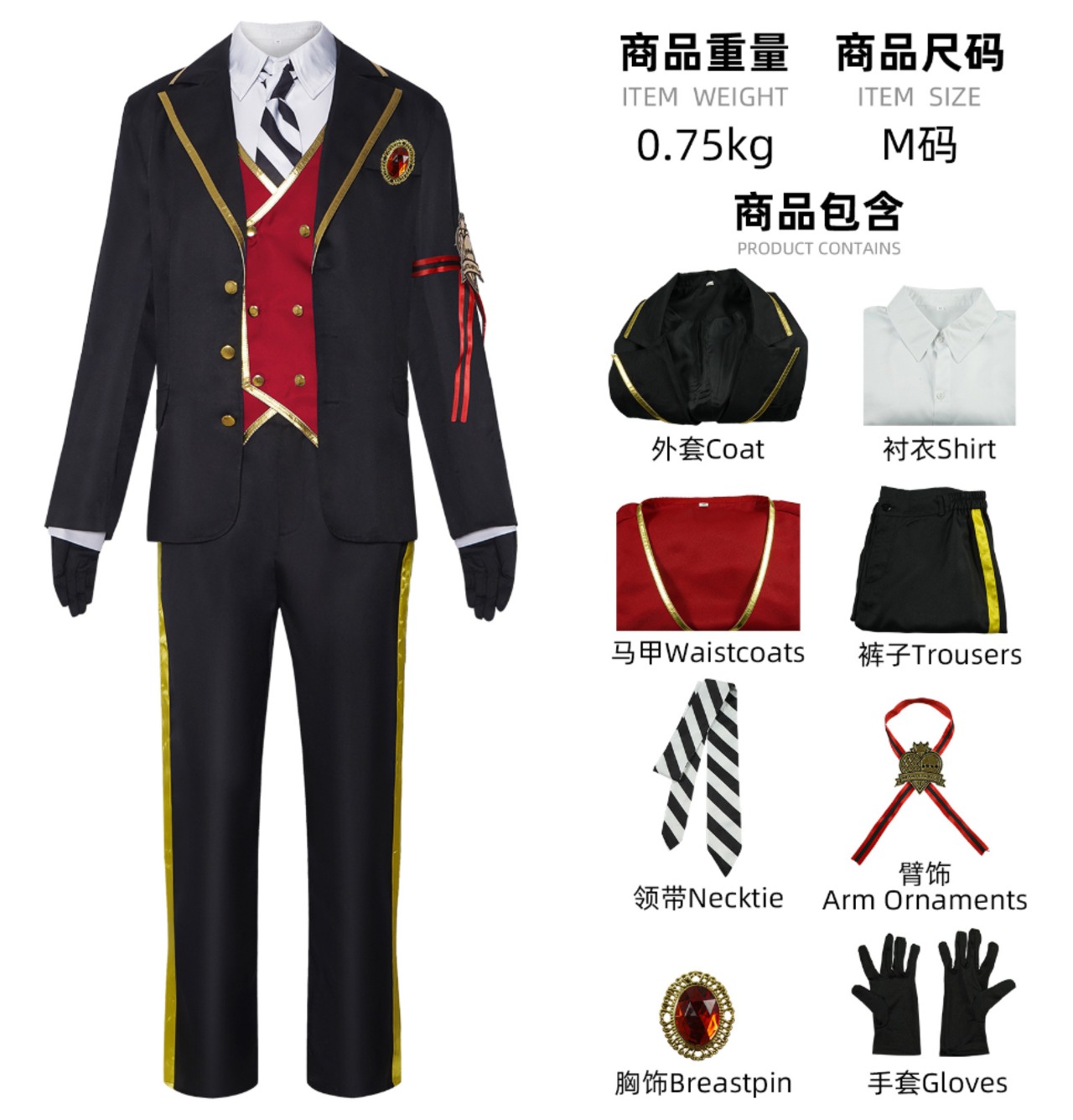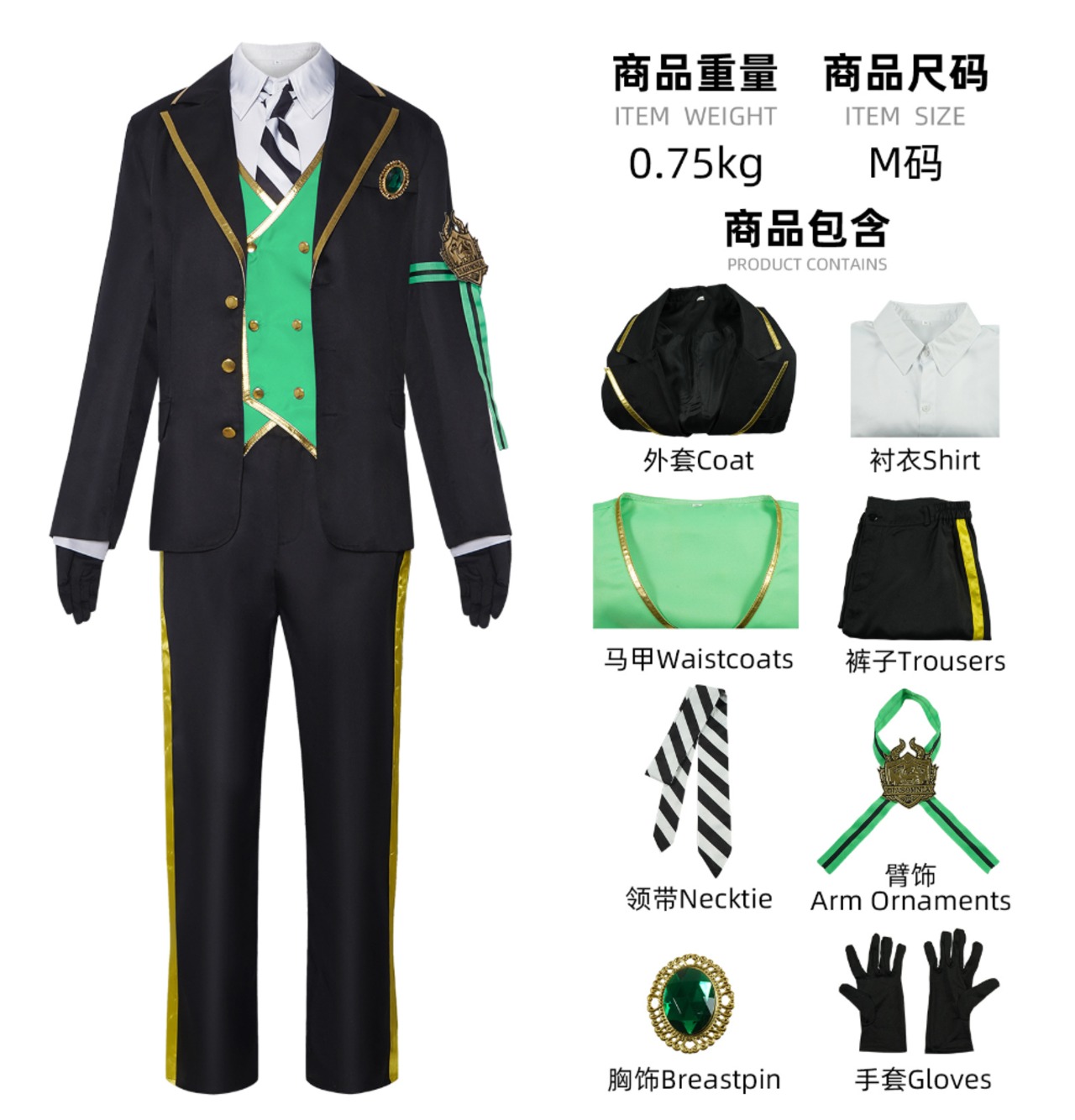 セット内容:コスプレ衣装(リドル・ルーク・エース・フロイド・マレウス・ラギー共通モデル)、アクセサリー