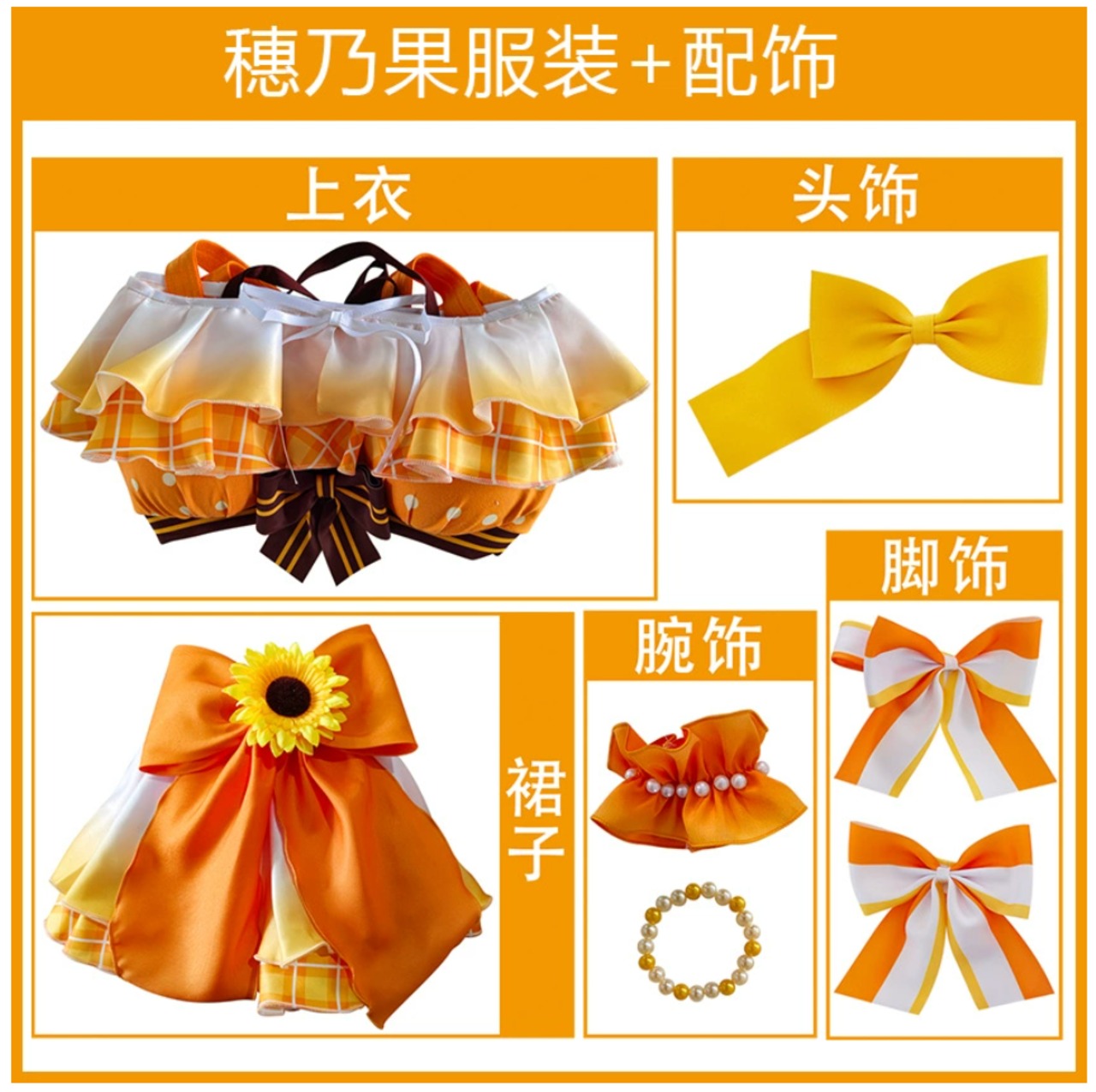 セット内容:コスプレ衣装(華陽・南ことり・絵里・海未・真姫・にこ・穂乃果・星空凛・東條希モデル)、アクセサリー