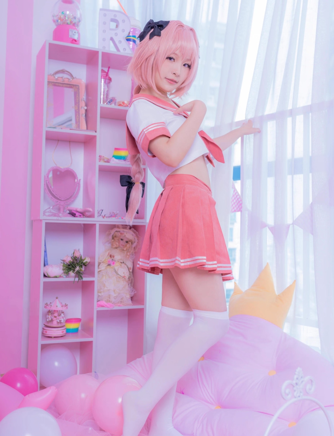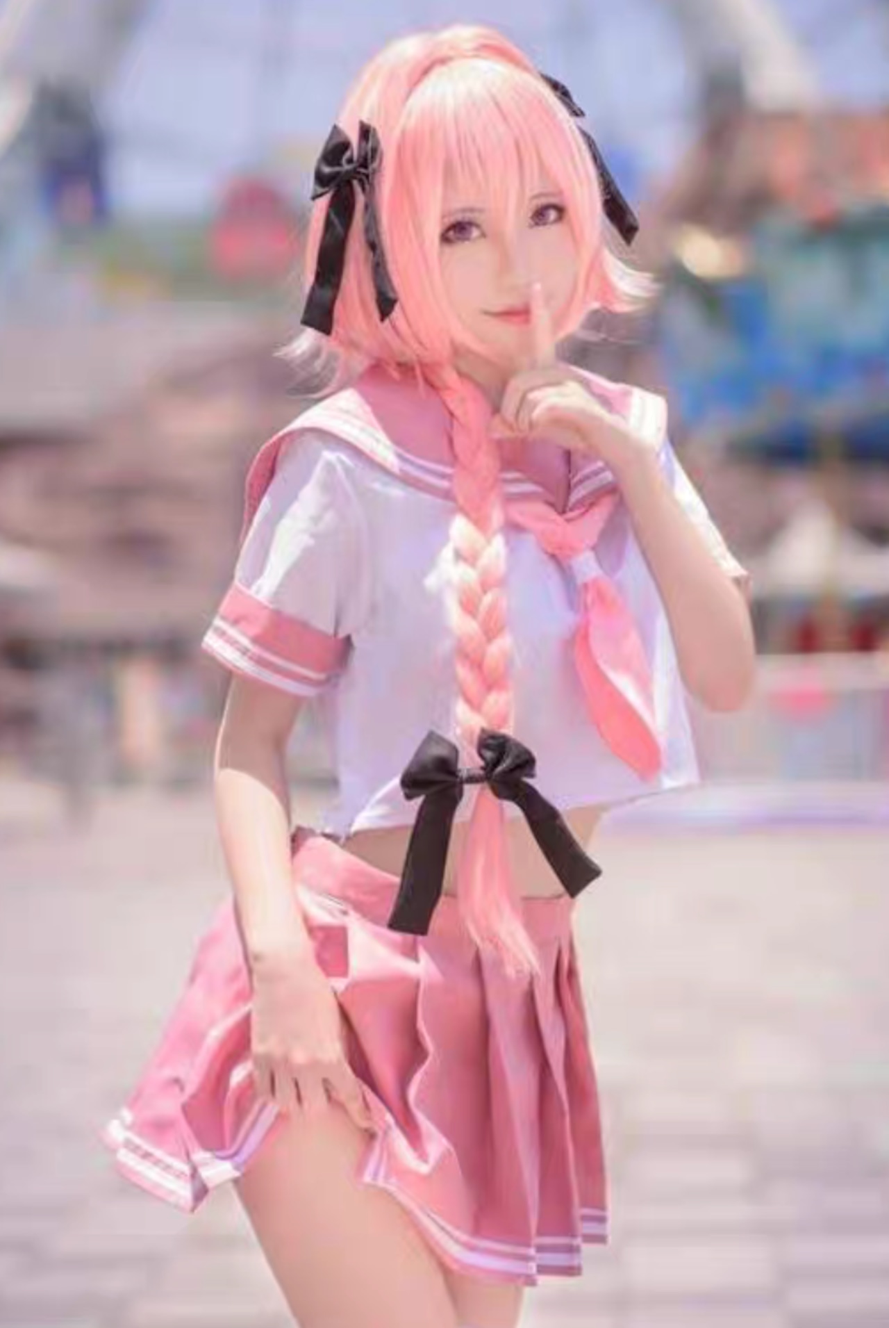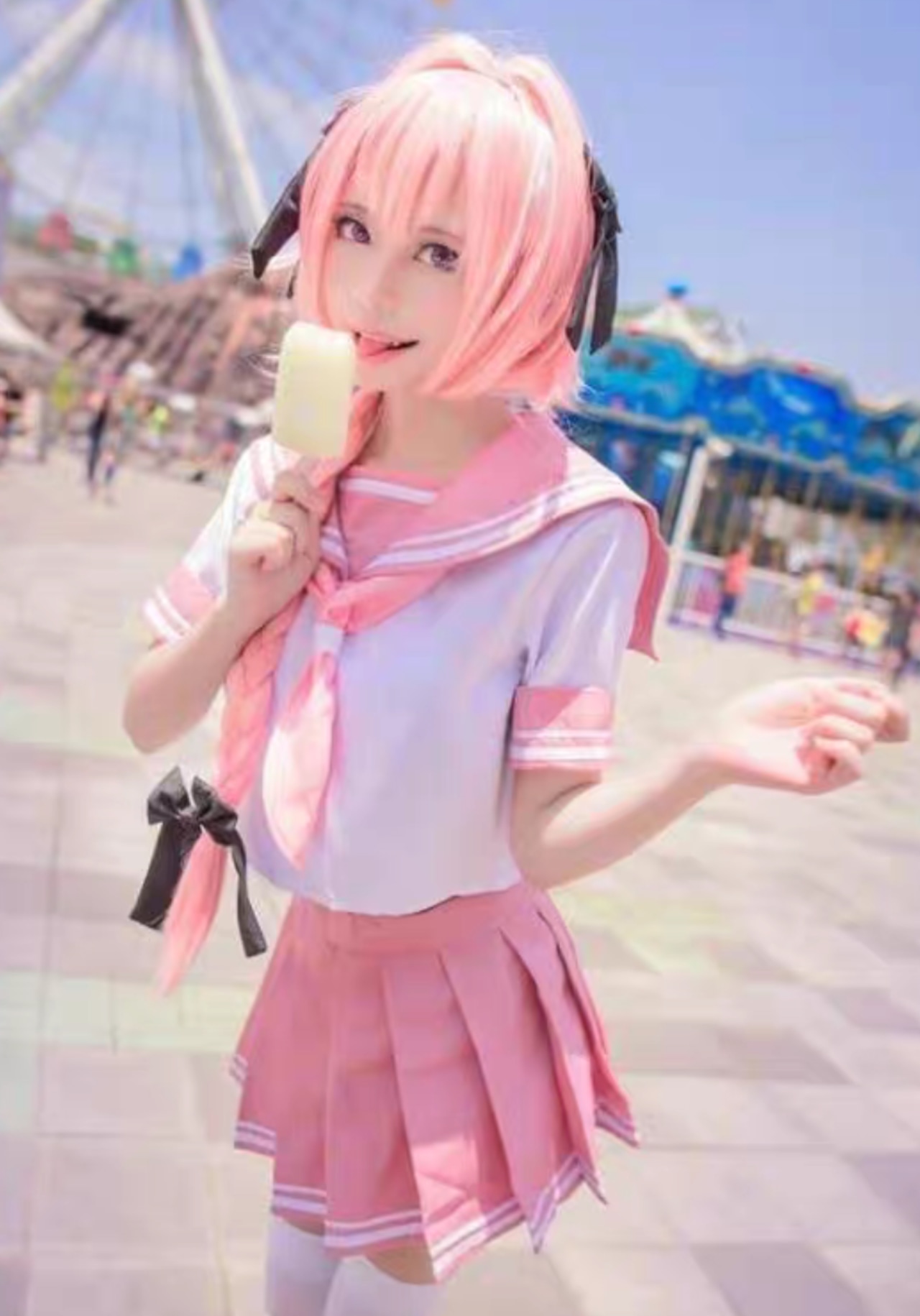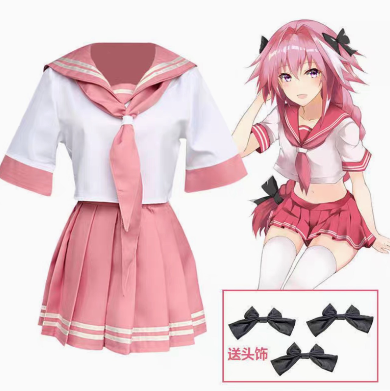 FGO Fate/GrandOrder アストルフォ コスプレ衣装 コスチューム 制服 セーラー服 ピンク フルセット ウィッグ付 TB-654867769684