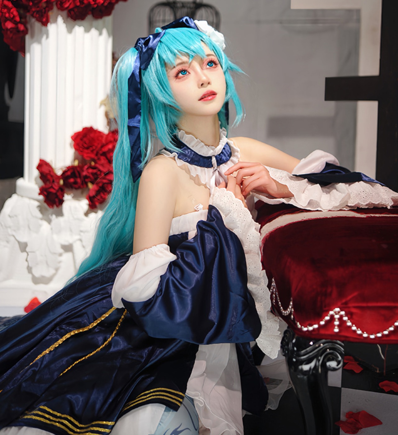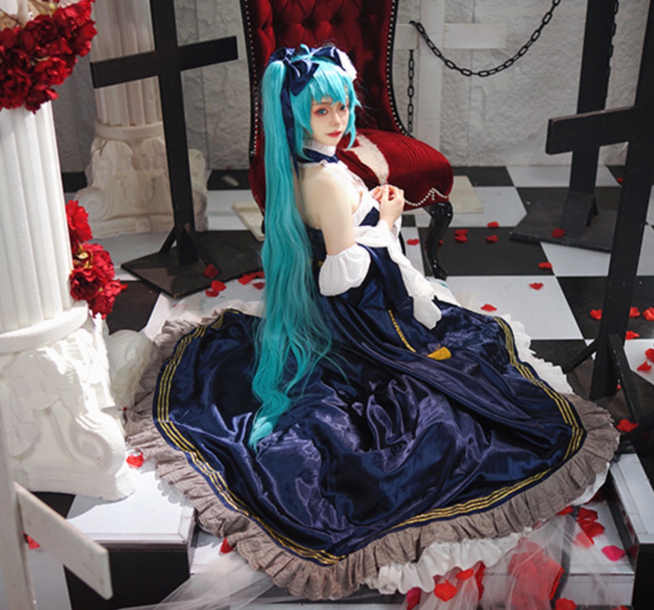 初音ミク パーティドレス コスプレ衣装 コスチューム ドレス アクセサリー ウィッグ付 フルセット AM-885389843030
