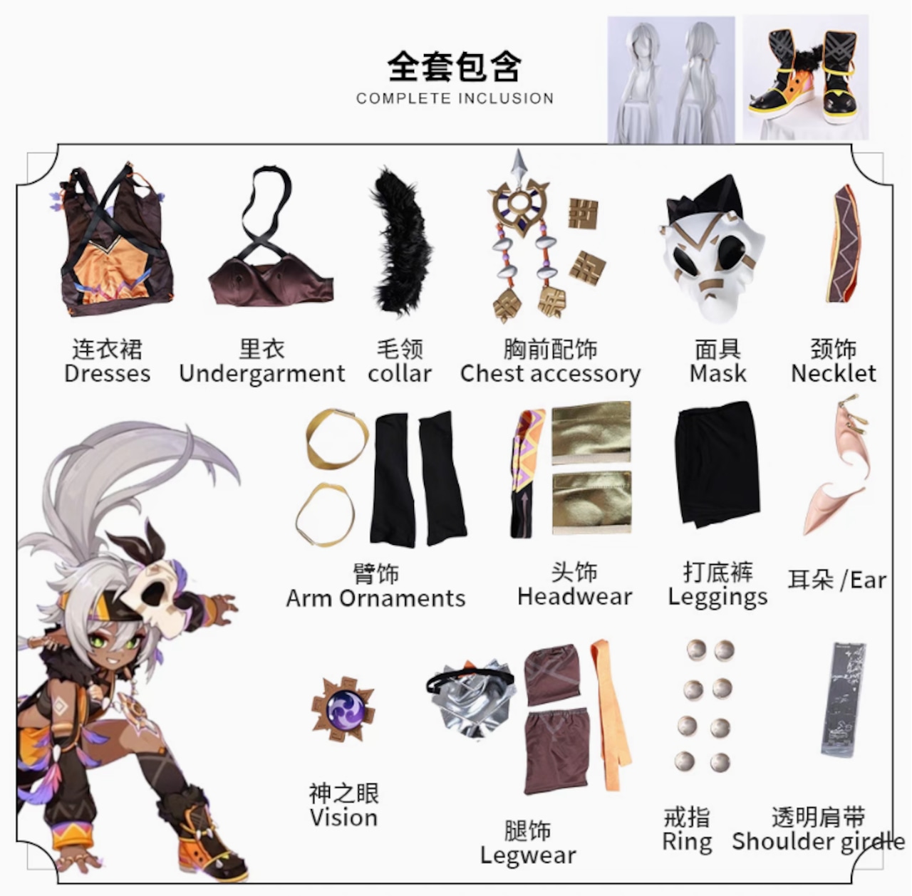 セット内容:コスプレ衣装(イアンサモデル)、ウィッグ、アクセサリー、お面、シューズ