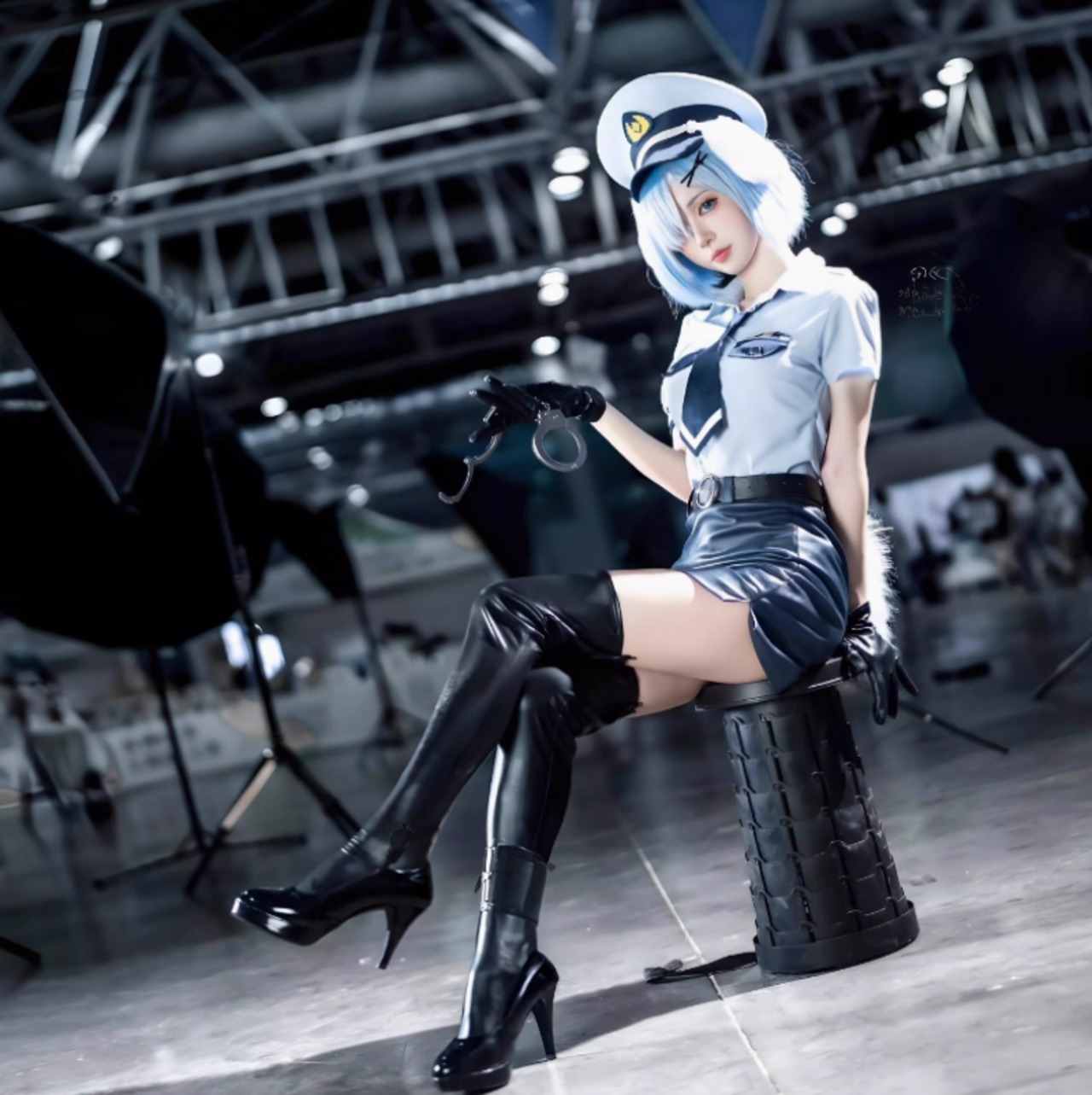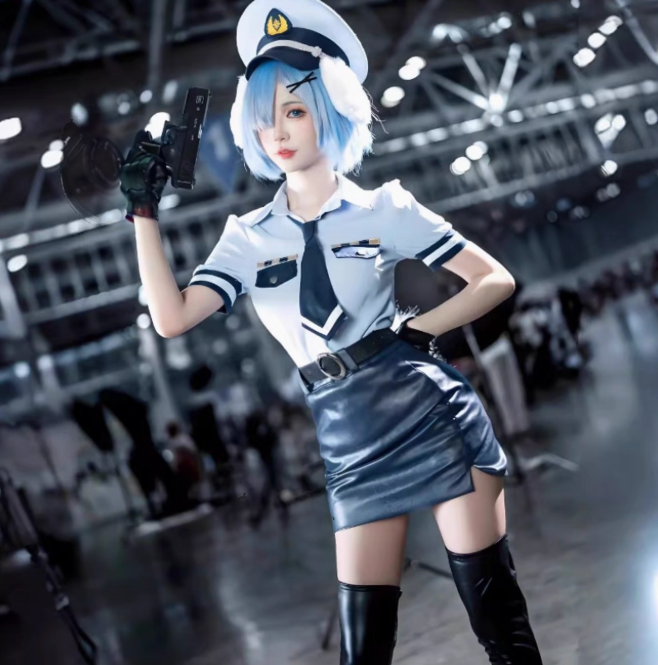 セット内容:コスプレ衣装(レム犬耳警察官モデル)、アクセサリー、帽子