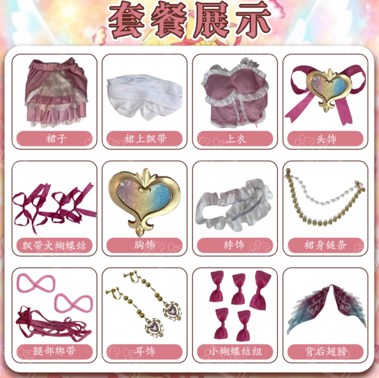 セット内容:コスプレ衣装(星宮いちごモデル)、アクセサリー、ウイング
