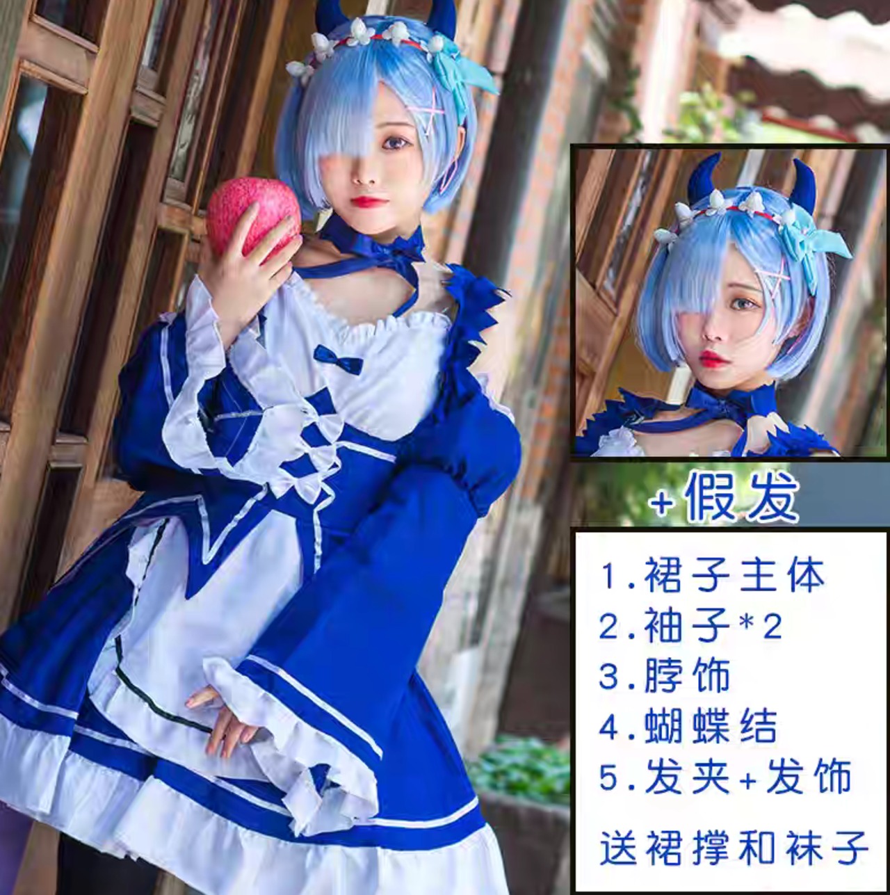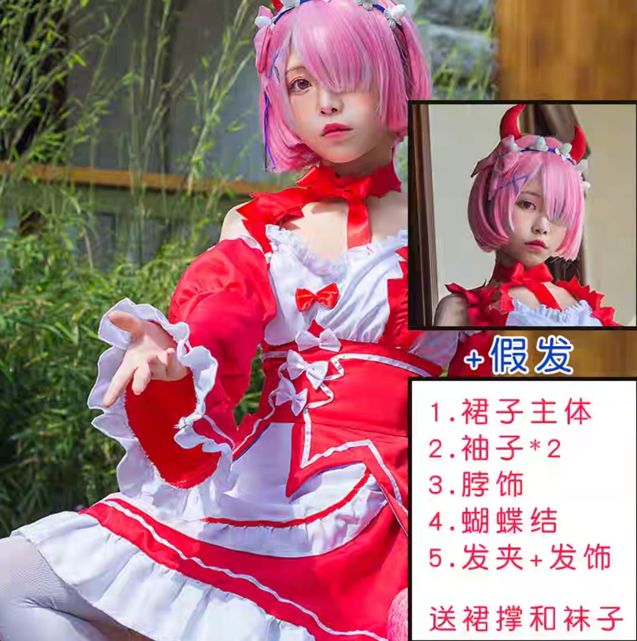 セット内容:コスプレ衣装(レム&ラムデビルメイドモデル)、アクセサリー、ウィッグ