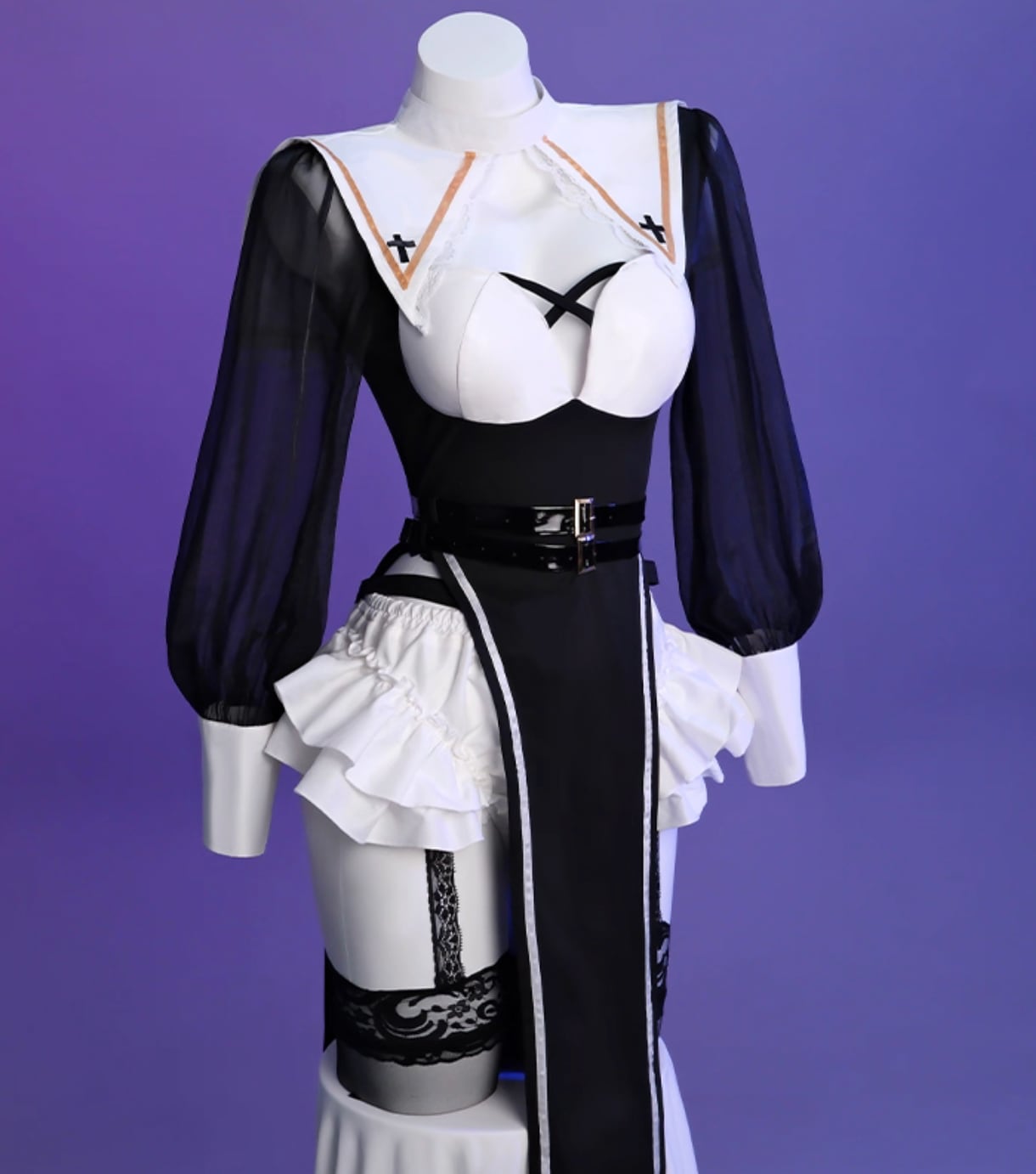 セクシーな修道女の魅力を見事に再現したデザイン – 大胆でエレガントなスタイルが際立つ